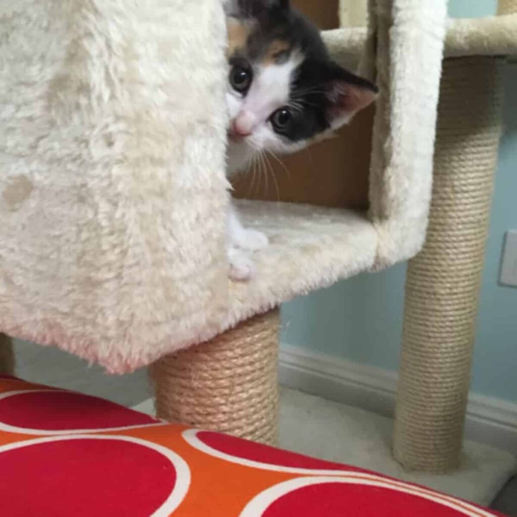 Once rescued, the caregivers at CatRescue created a safe, warm corner in their office to welcome the feline family. While the playful kittens enjoyed climbing the cat tree and exploring their new surroundings, their mother kept her distance. She remained wary and cautious, only feeding her babies when no one was around.